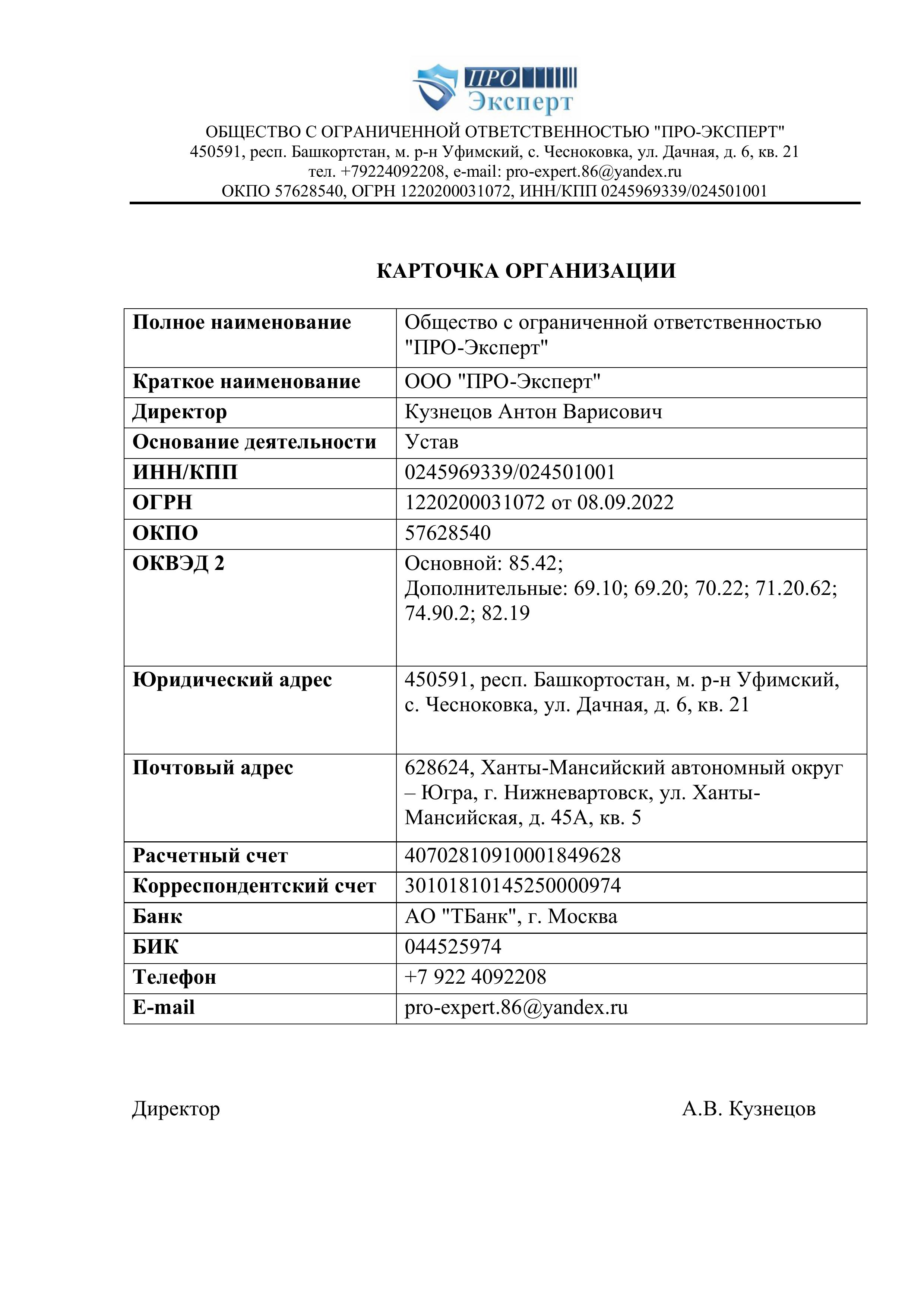| Полное наименование | Общество с ограниченной ответственностью "ПРО-Эксперт" |